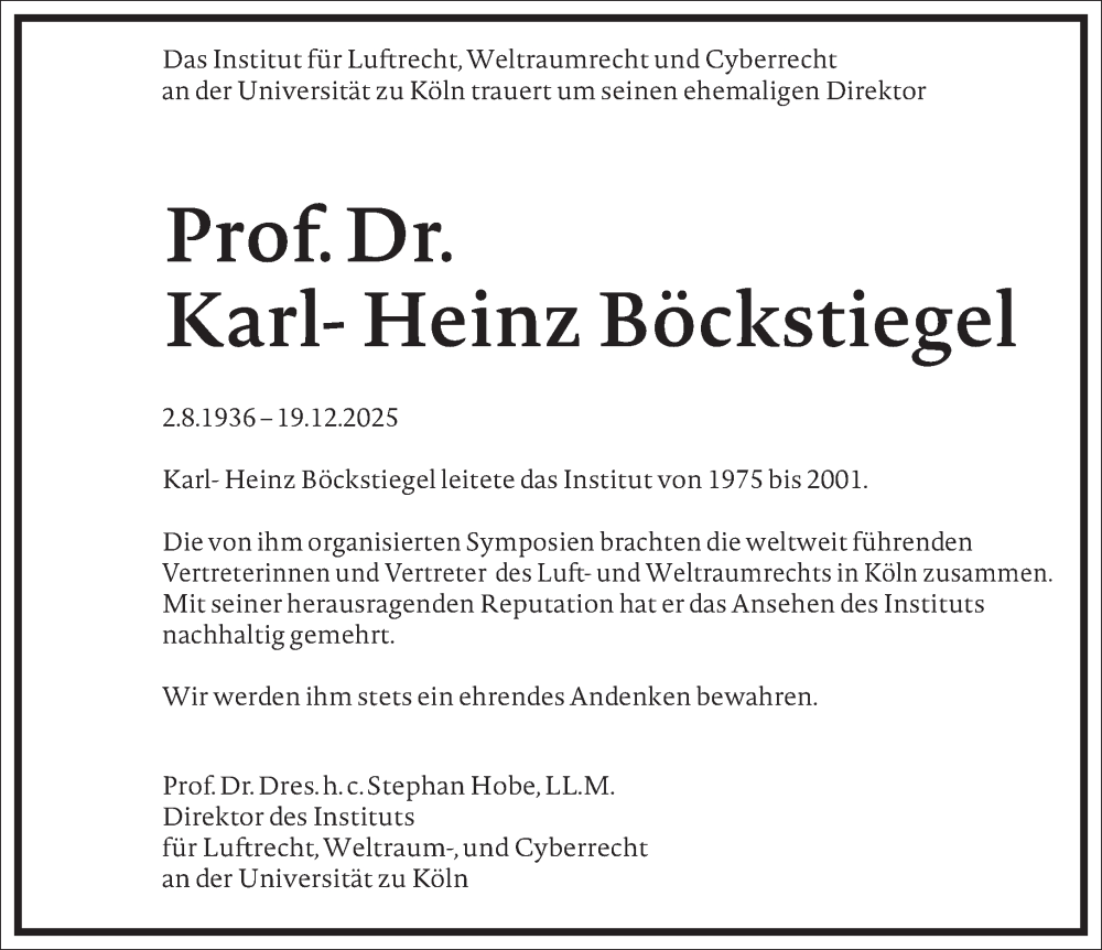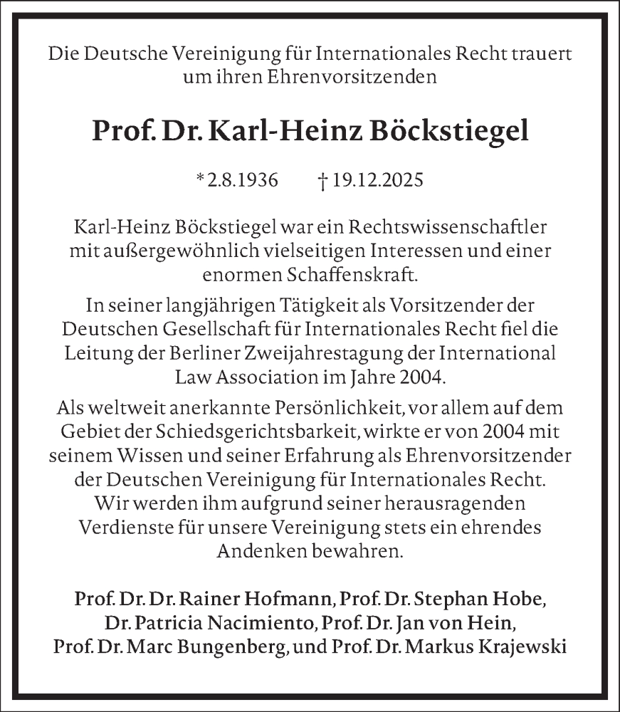Hier finden Sie alle Traueranzeigen aus der Zeitung, die bisher für Karl-Heinz Böckstiegel erschienen sind. Weitere Traueranzeigen, die in der Zeitung erscheinen, werden hier ebenfalls aufgelistet