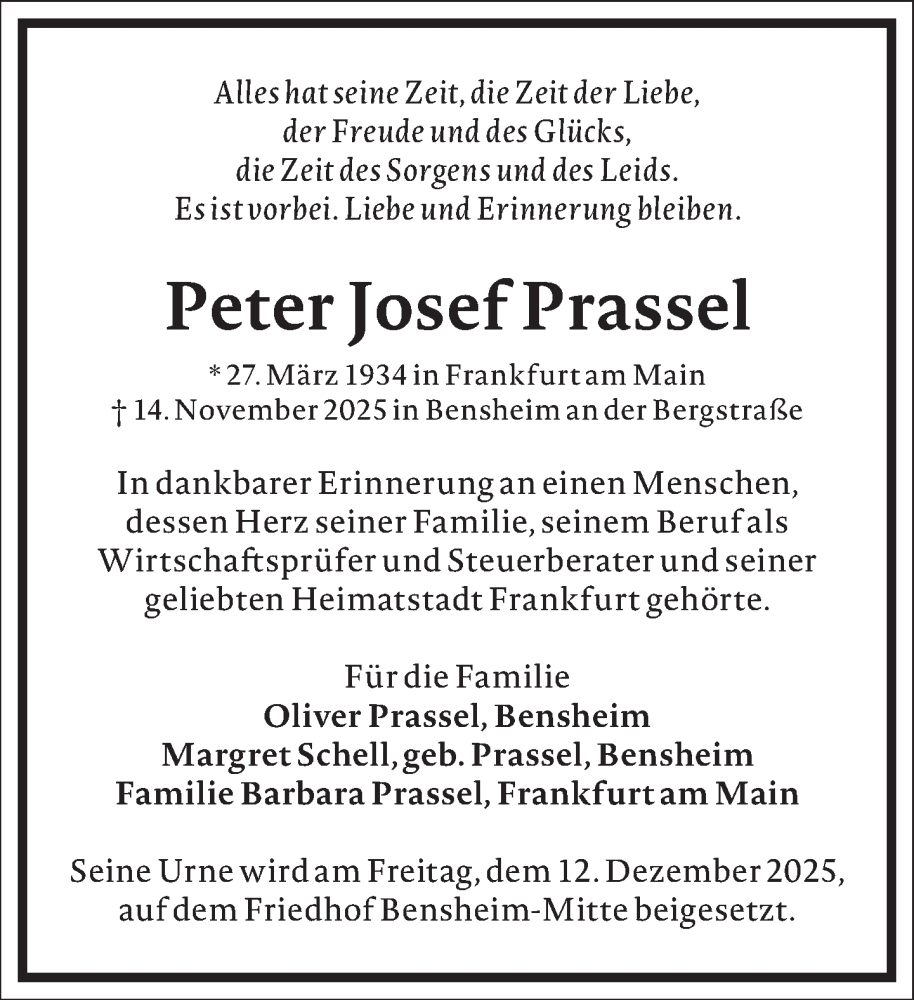 Hier finden Sie alle Traueranzeigen aus der Zeitung, die bisher für Peter Josef Prassel erschienen sind. Weitere Traueranzeigen, die in der Zeitung erscheinen, werden hier ebenfalls aufgelistet