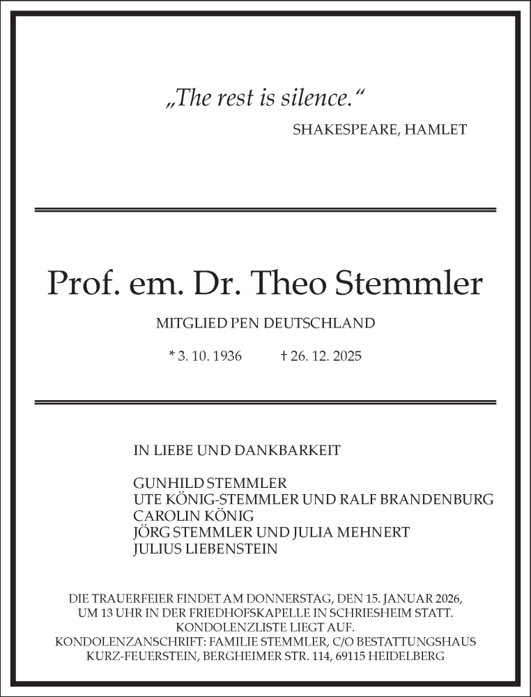 Hier finden Sie alle Traueranzeigen aus der Zeitung, die bisher für Theo Stemmler erschienen sind. Weitere Traueranzeigen, die in der Zeitung erscheinen, werden hier ebenfalls aufgelistet